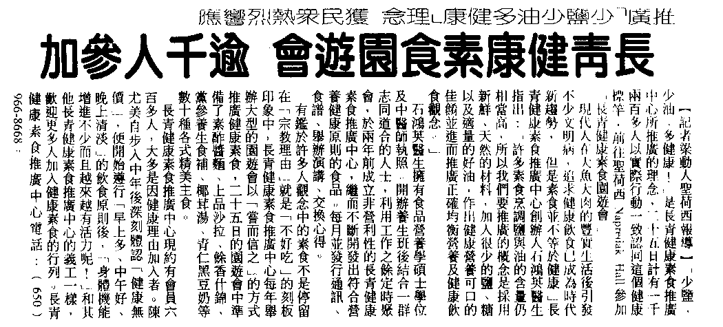 第五期 長青健康素食推廣中心 發行 一九九九年三月